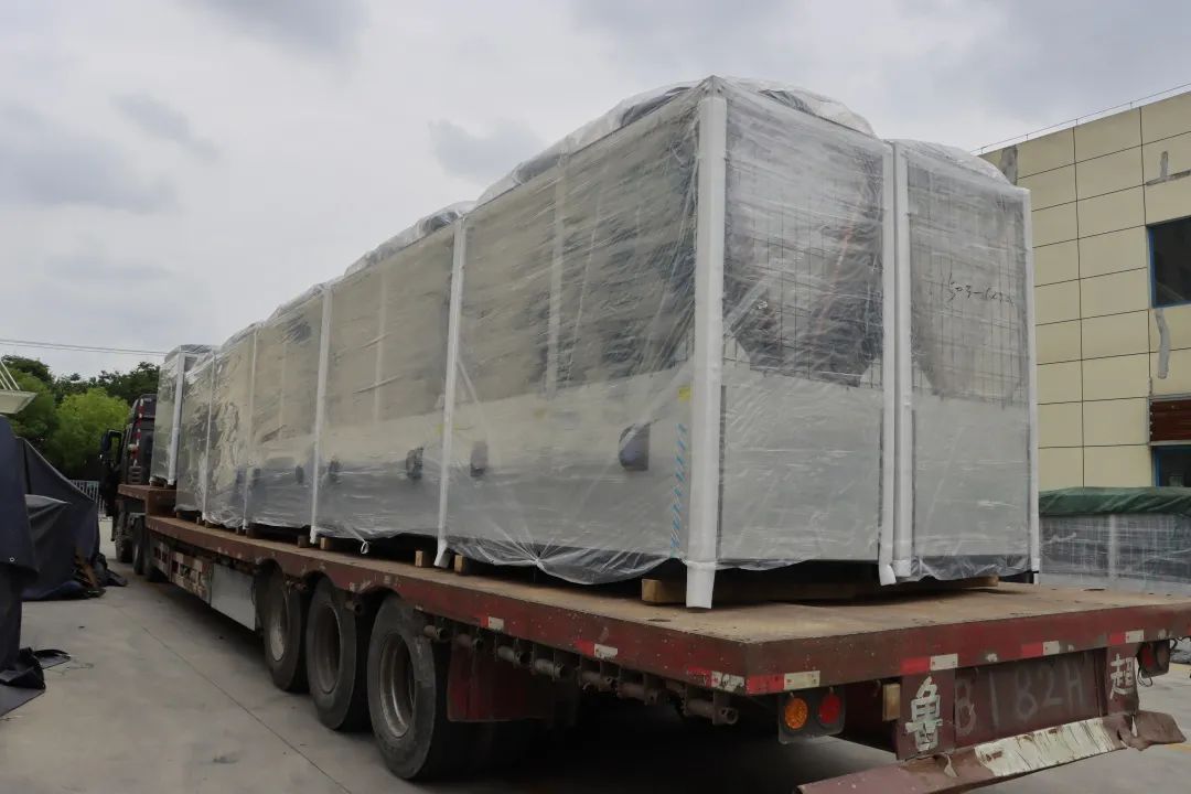 這12臺大機組都是發(fā)往鎮(zhèn)江的。小編去了解了一下,這是鎮(zhèn)江高新區(qū)半導(dǎo)體及通信產(chǎn)業(yè)標(biāo)準(zhǔn)廠房采暖制冷項目,采用12臺48匹天舒空氣源采暖制冷熱泵末端連接風(fēng)盤和組合式空調(diào)箱,滿足8000㎡廠房的采暖制冷需求。等項目完工,再奉上后續(xù)美圖哦~