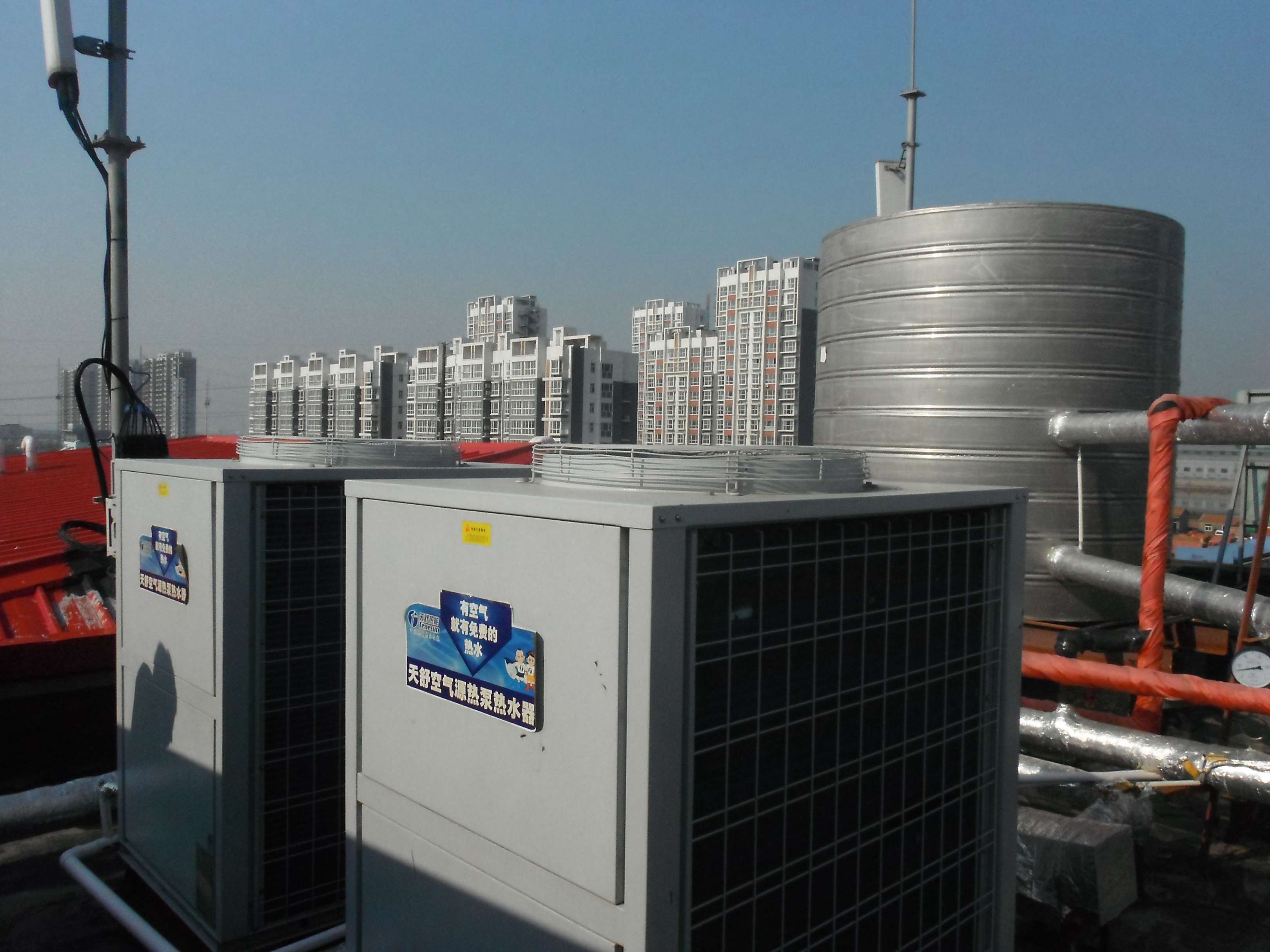 項(xiàng)目位于滄州市東部,瀕臨渤海灣,是一個(gè)新興的開(kāi)發(fā)區(qū)。該酒店位于黃驊港中心,每天日用水量為20噸,使用天舒公司2臺(tái)超低溫機(jī)組。該工程完成時(shí)間距今約3個(gè)月左右,目前運(yùn)行穩(wěn)定,在酒店入住率將近滿(mǎn)負(fù)荷的情況下,在未使用電輔助加熱的情況下,也能很好地滿(mǎn)足酒店的熱水需求。