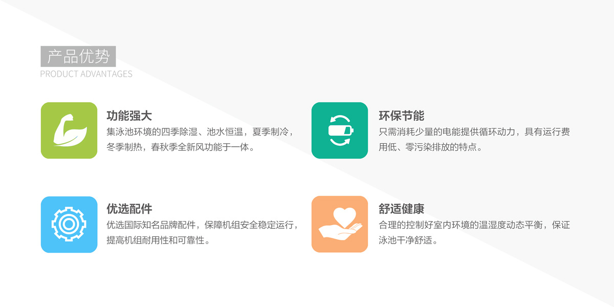 體育館需要舉行各類賽事,對(duì)觀眾和運(yùn)動(dòng)員來說,館內(nèi)美觀舒適度尤為重要,天舒泳池?zé)岜孟到y(tǒng)維持游泳環(huán)境溫濕度動(dòng)態(tài)平衡,創(chuàng)造健康舒適美觀的環(huán)境。