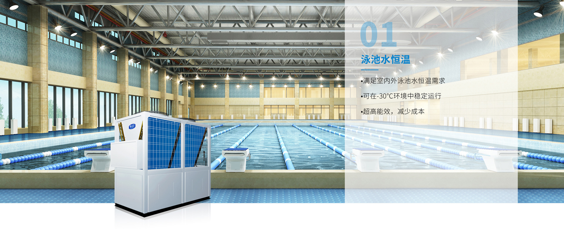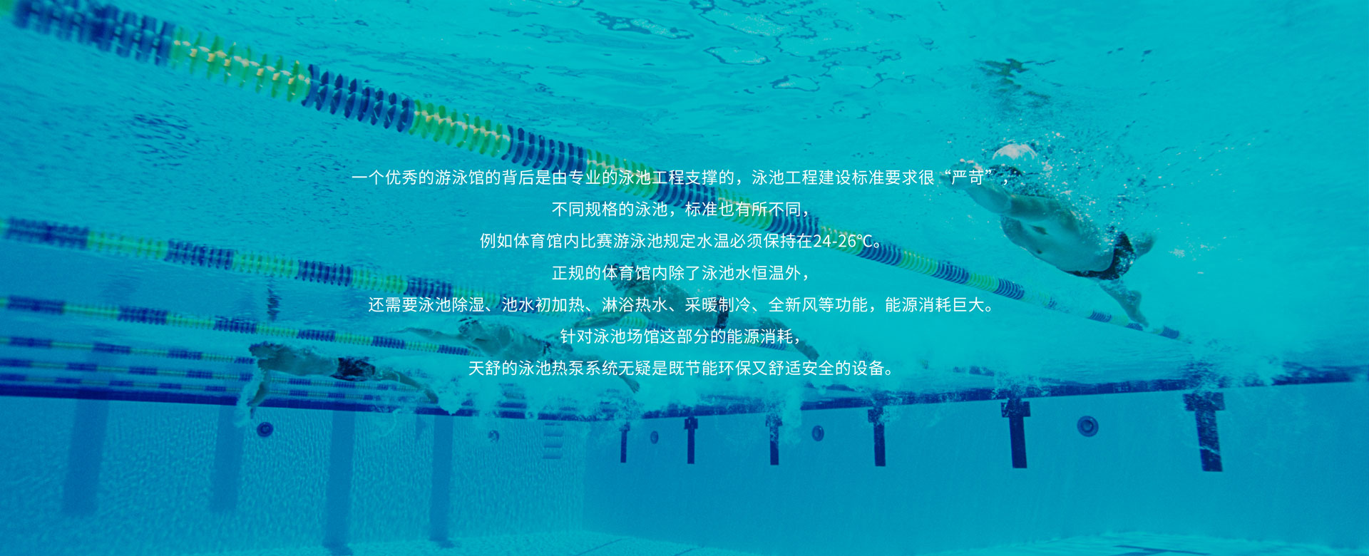 比賽游泳池對(duì)水溫要求較高,天舒泳池?zé)岜孟到y(tǒng)不僅能精確的控制水溫,而且相比傳統(tǒng)的加熱方式,可節(jié)約80%運(yùn)行費(fèi)用。