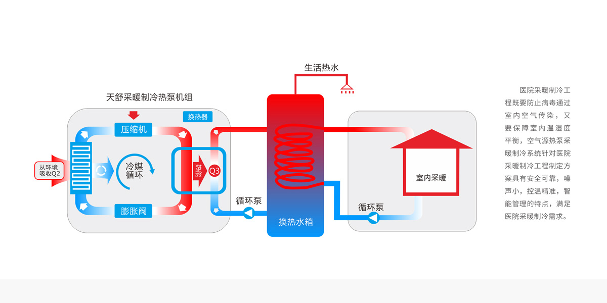 醫(yī)院采暖制冷需要運行穩(wěn)定,舒適安靜等要求。
